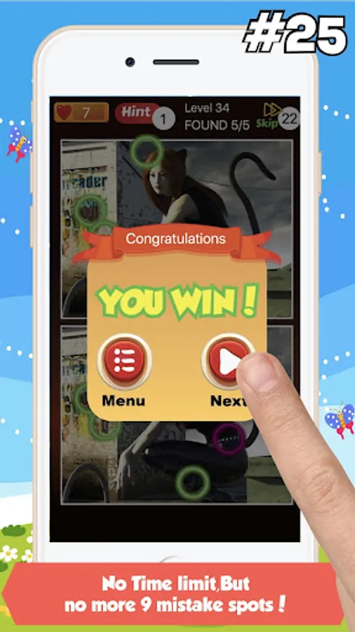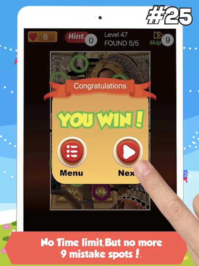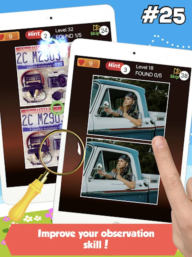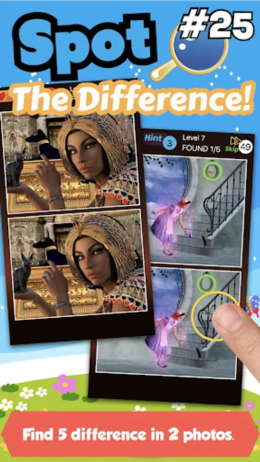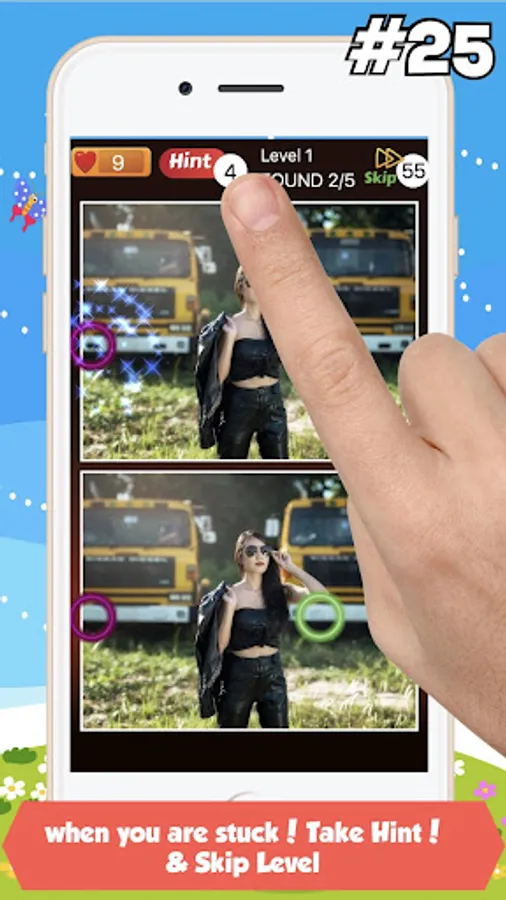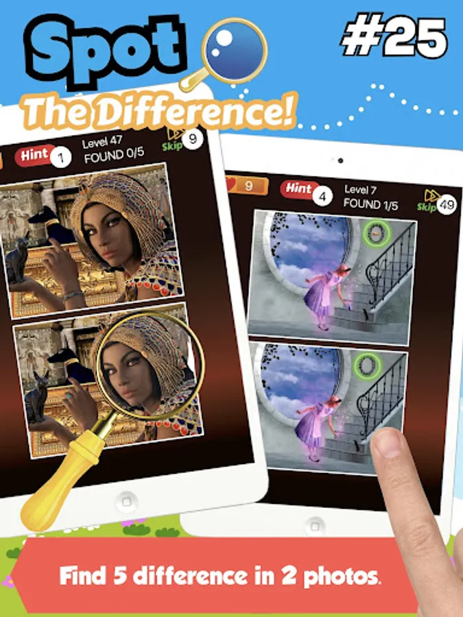 5. when you are stuck! Take Hint for increase the number of difference and Skip to skip level.