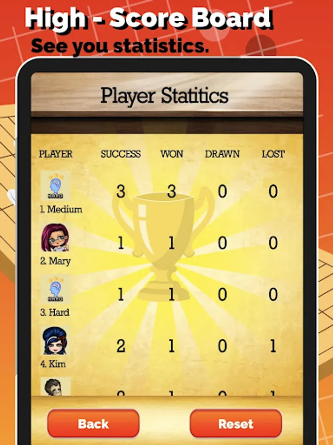 Finally, you can see your statistics ranking in Offline High-Score board for show off your score.