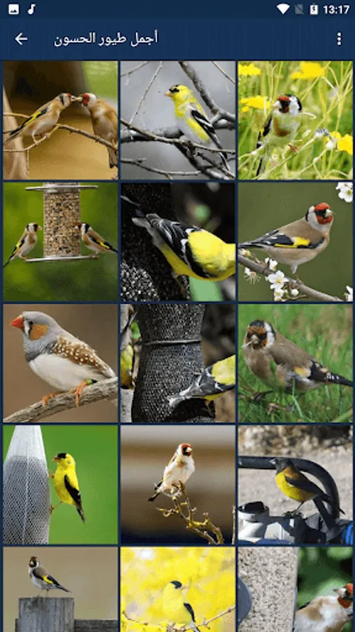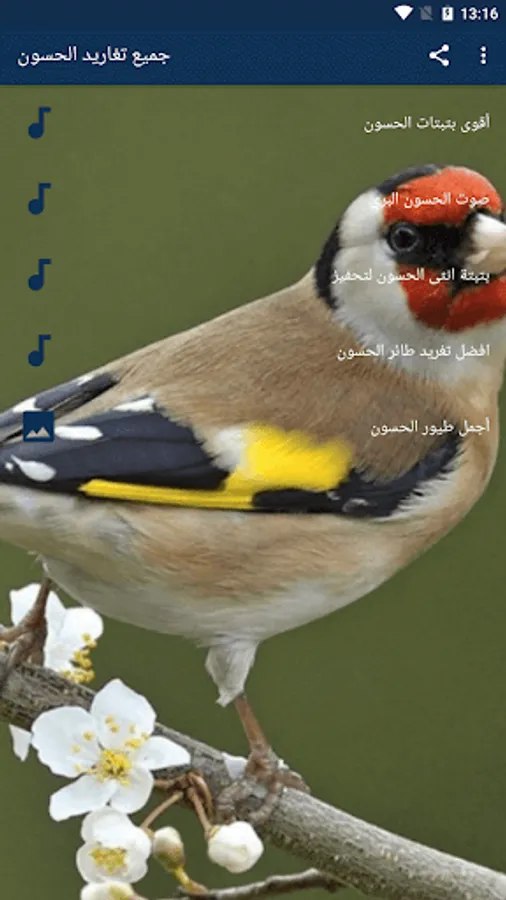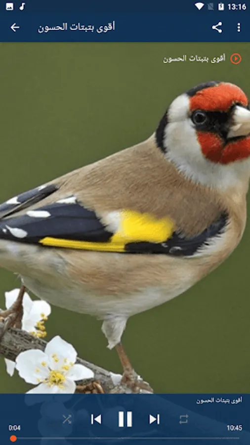 One of the most beautiful birds of small size spread in various continents except Antarctica. Distinguish him from other birds, so the color of the small feathers on the front of his face is scarlet red, with an extension of the white feathers on the rest of his face down to the neck, where the black feathers are spread as well as the black feathers extend along its tail and the edges of its wings, while the yellow feathers spread in the middle of the wings, and is distributed Brown feathers on the back of the goldfinch and white feathers on its stomach