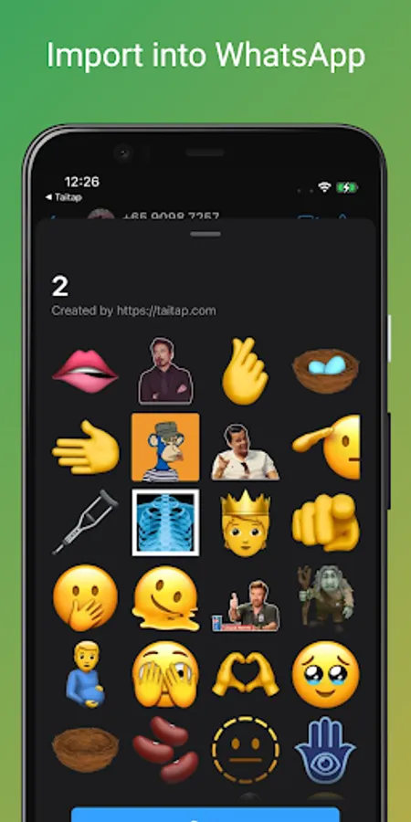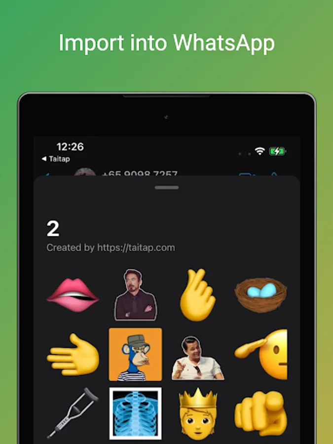 In this app you can browse NFT stickers that creators have made available at the https://taitap.com marketplace, and you can import any that you own directly into WhatsApp as stickers to use in your conversations with friends and family.