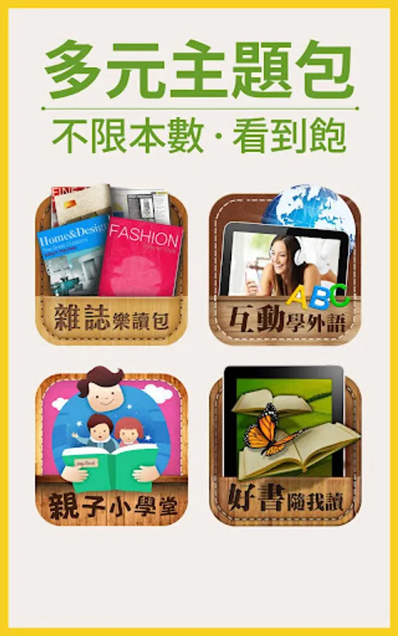 2) The first theme e-book monthly rental service to meet various reading needs: "Magazine Reading Package", "Read Good Books with Me", "Learn Foreign Languages Interactively", "Primary School for Parents and Children"