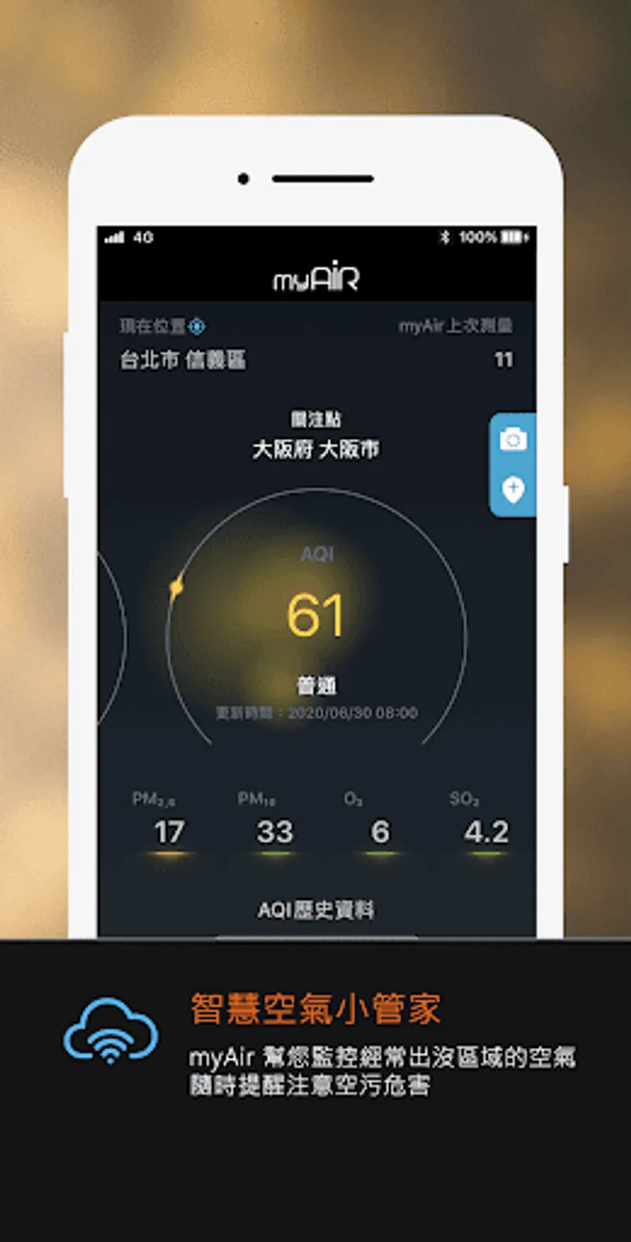 ※Some functions of App need to be used with myAir PM2.5 detector.