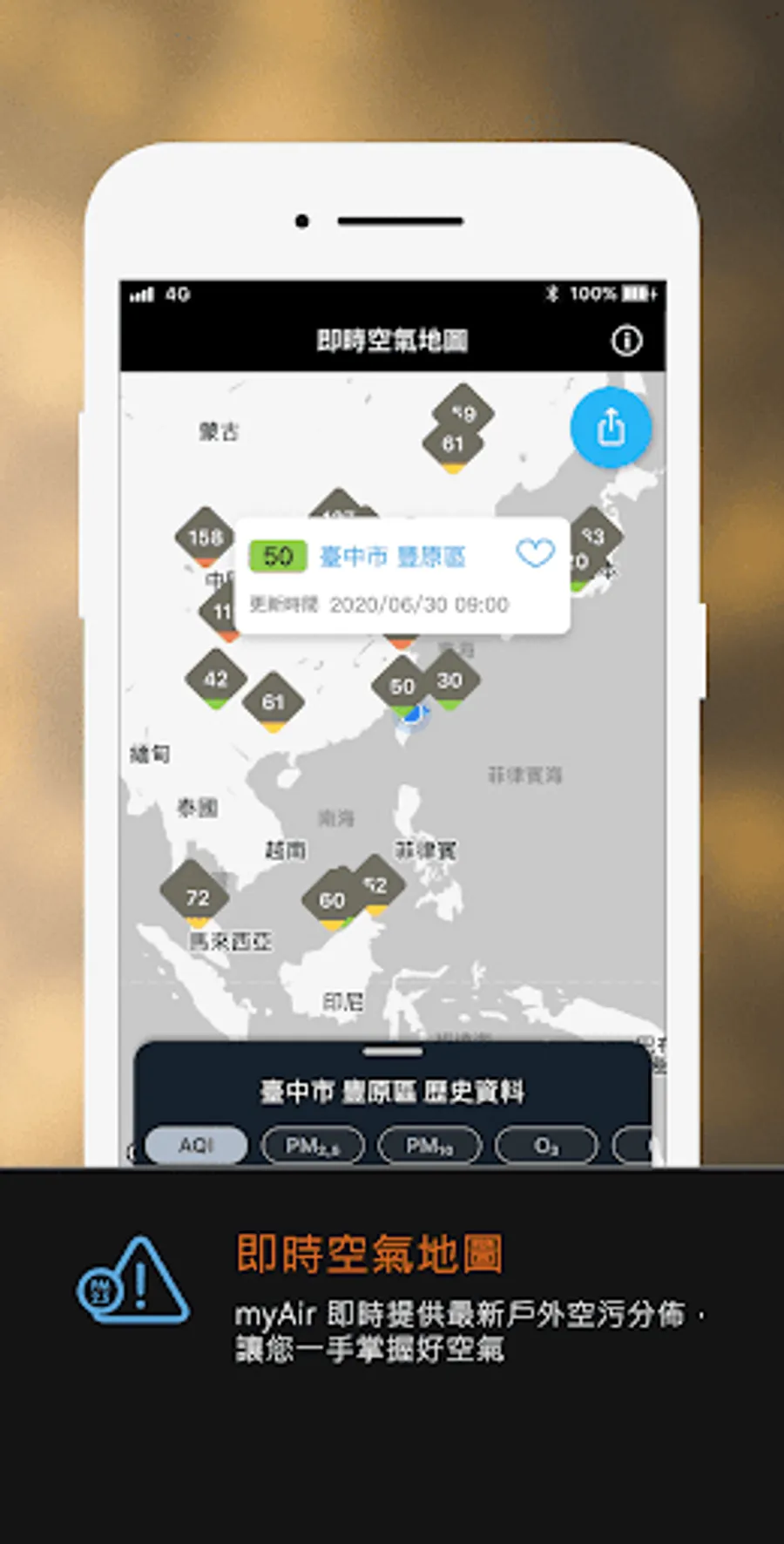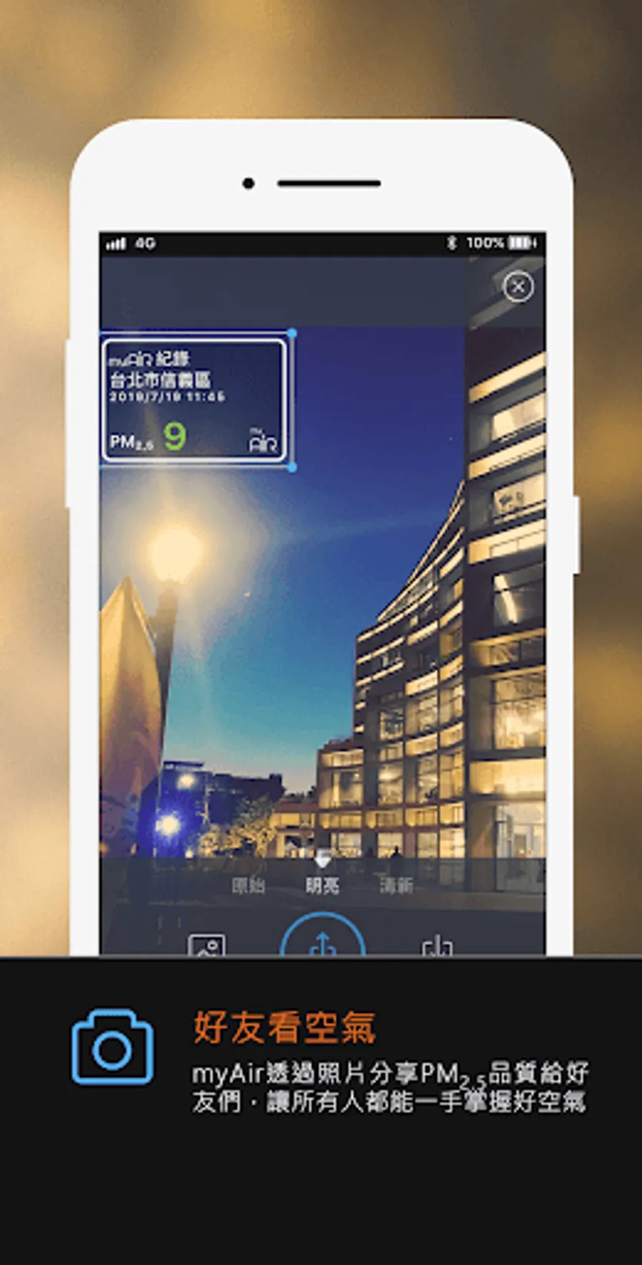 Allows you to share the measured PM2.5 air quality with friends through photos, so that everyone can care about the air together and solve everyone's air pollution problems.