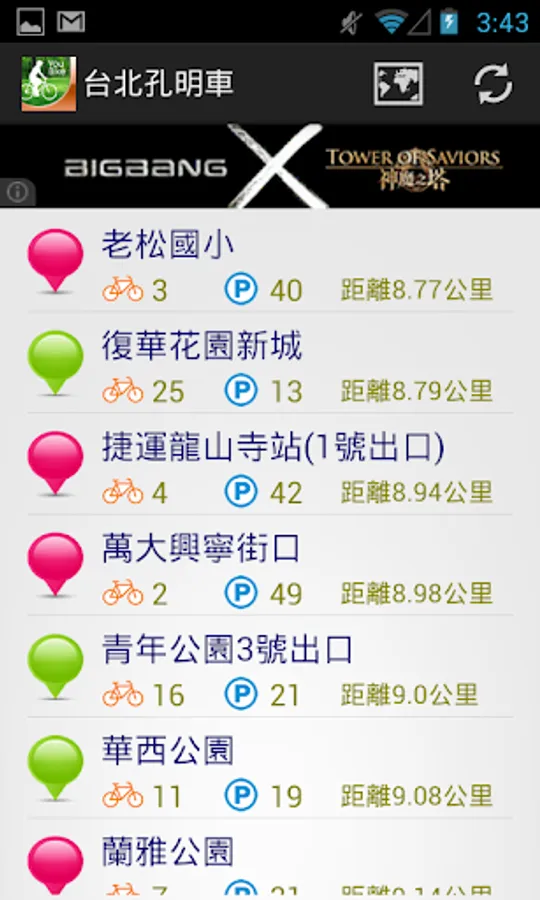 Disclaimer: The contents of the use of IT programs are used, Taipei, New Taipei City Hall and Giant Manufacturing Co., Ltd. of public information, the information of the copyright is owned by the management unit of the original source of all, this software is not a former public official entrusted bike production, use only plant-based Public Information, former official does not warrant the accuracy and effectiveness, nor responsible for the use of the results.