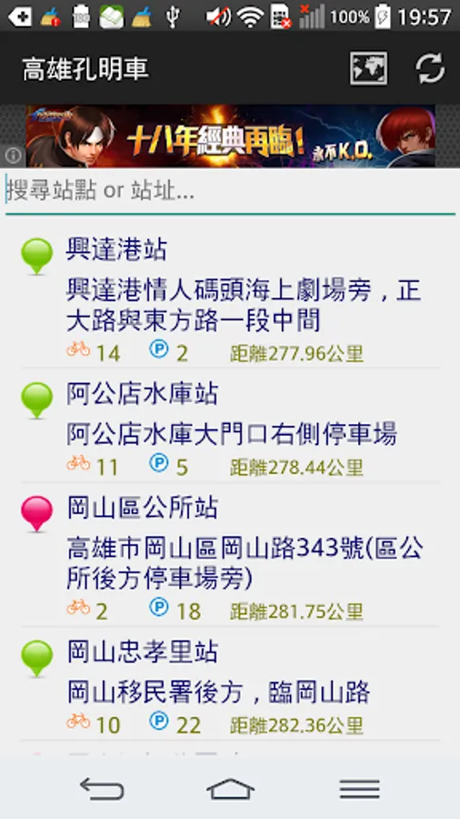 Kaohsiung Ming car with "Kaohsiung City Public bike (CityBike / Cbike)" real-time information query contains the following features