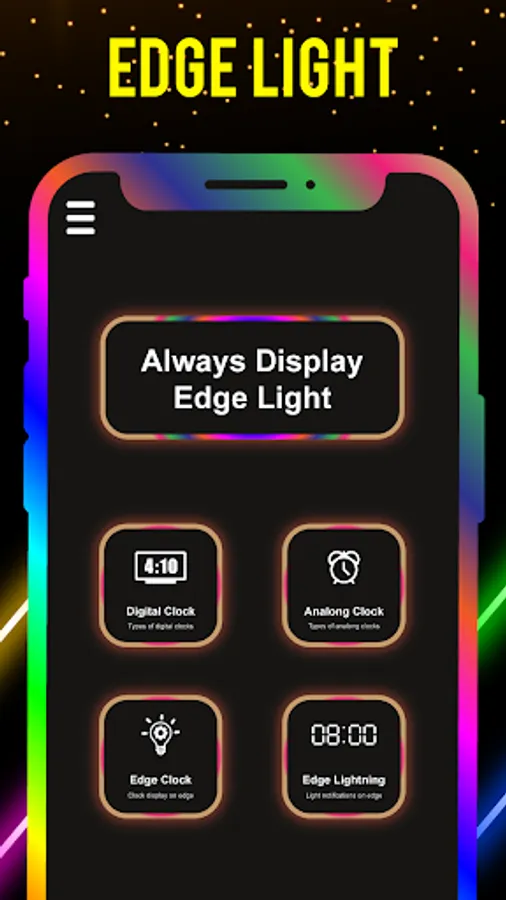 This application enhances attractive curved LED Light around your mobile phone Home Screen & Lock Screen borders. With customized colorful Lighting combinations and customization preferences, this border light app will turn your mobile phone screen into a mystic experience.