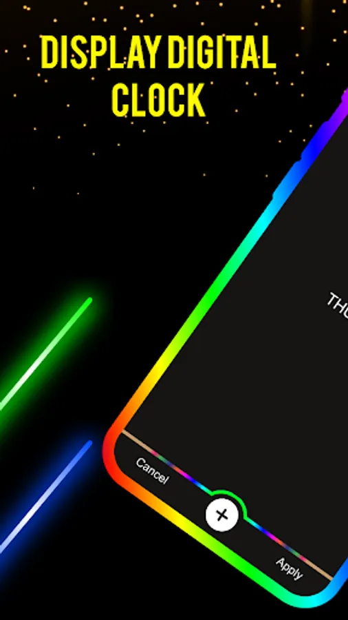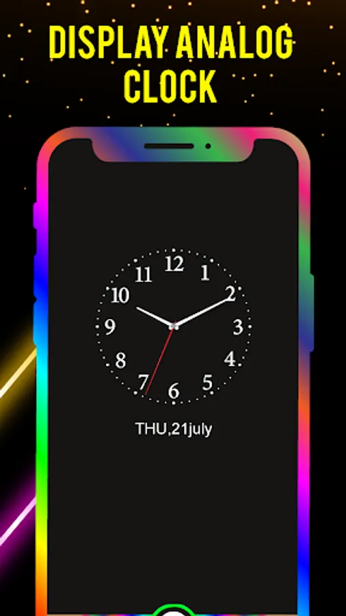 Edge and Border Notify Light is having Clock Feature which allows you to display customized Clock on your Screen with diverse colors, which can also be displayed as digital or analog clock.