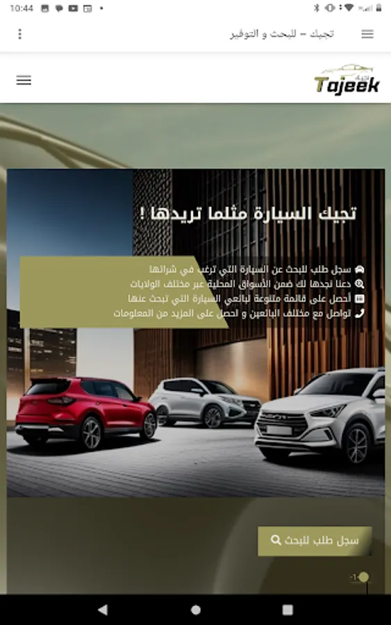 The "Tjek" application is an application designed specifically to help its users in Algeria to search for cars available for sale in the local market, in an easy and convenient way. The application allows users to access a wide range of cars for sale in the local market, including new and used cars.