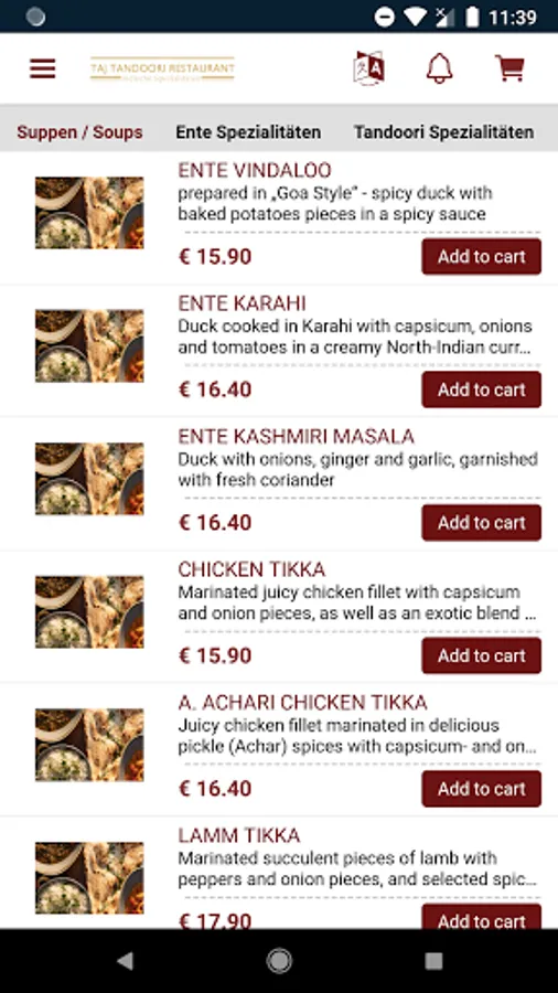Unsere Köche, die sich auf die indische Küche spezialisiert haben, bereiten Ihr Essen sorgfältig zu, damit Sie die besten indischen Gerichte genießen können. Unsere Speisekarte ist eine perfekte Kombination aus modernen und traditionellen authentischen Geschmacksrichtungen aus Indien. Unsere Spezialität des Hauses, das Chicken Taj Tandoori, ist bei unseren Gästen sehr beliebt.