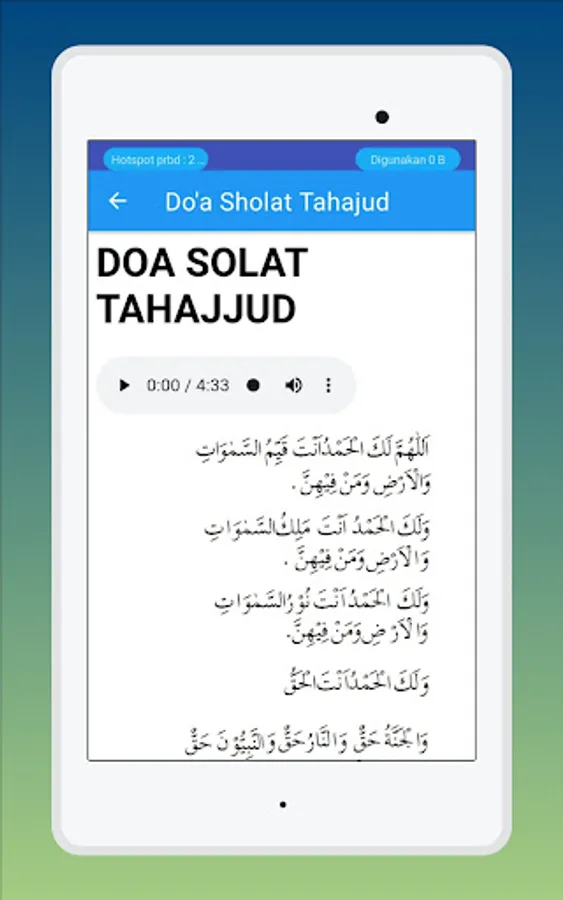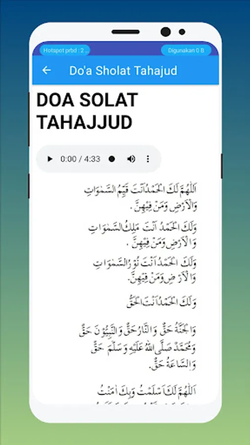> Allahumma lakal-hamd. Anta qaiyyimus-samawati wal-ardhi wa man fihinna. Walakal-hamd, Laka mulkus-samawati wal-ardhi wa man fihinna. Walakal-hamd, anta nurse-samawati wal-ardhi. Walakalhamd, anta-l-haq wa wa'duka-l-haq, wa liqa'uka Haq, wa qualuka Haq, wal-jannatu Han wan-naru Haq wannabiyuna Haq. Wa Muhammadun, sallal-lahu-alaihi-wasallam, Haq, was-sa'atu Haq. Allahumma aslamtu Laka wabika amantu, wa 'Alayka tawakkaltu wa ilayka anabtu wa bika Khasamtu wa ilayka hakamtu faghfir li ma qaddamtu wama akh-khartu wama as-rartu wama'a lantu anta-l-muqaddimu wa anta-l-mu'akh-khiru la ilaha illa anta (or la ilaha ghairuka). ¹