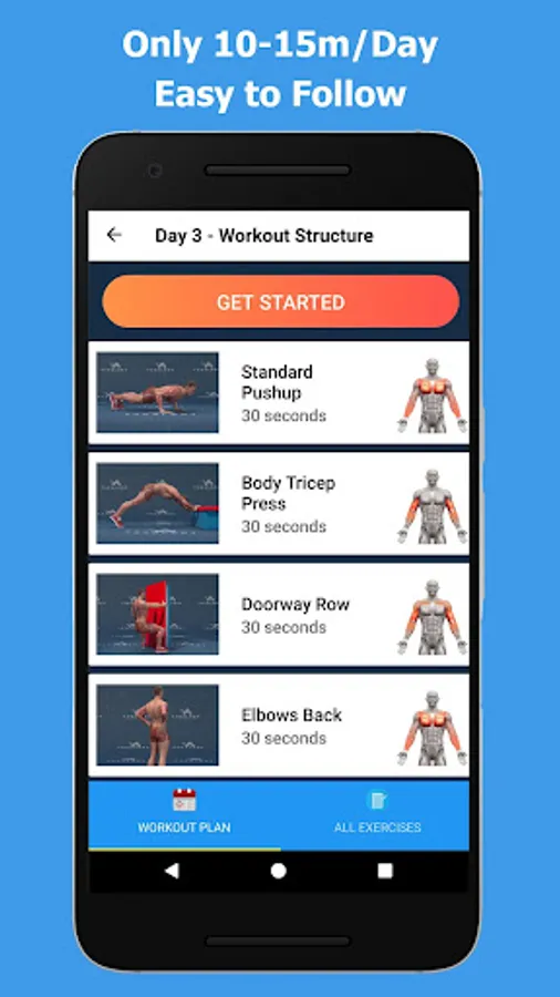 - Only 10 to 20 minutes upper body workouts. Amazing 30 days training with your personal trainer.