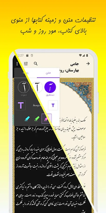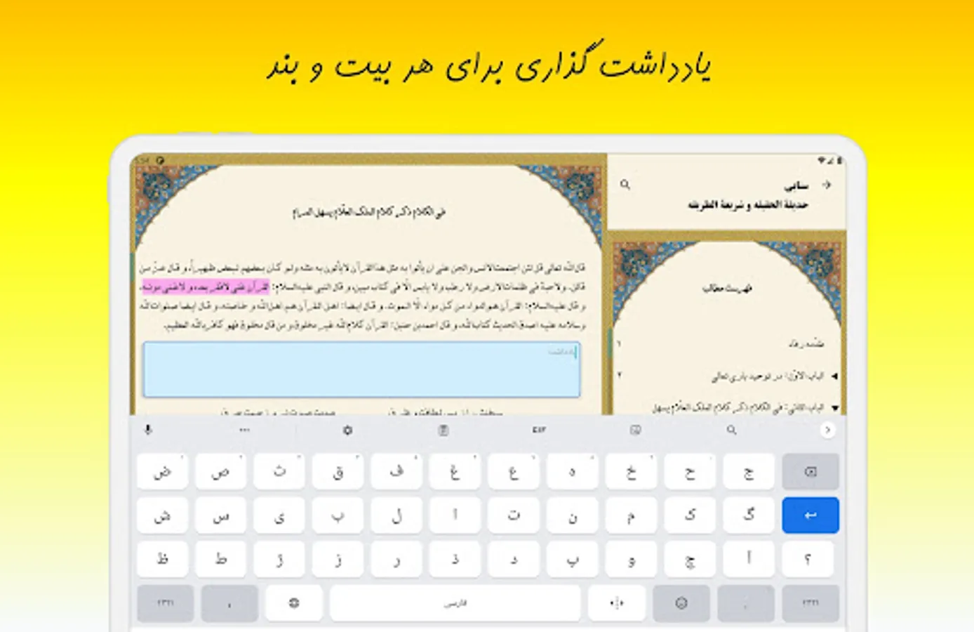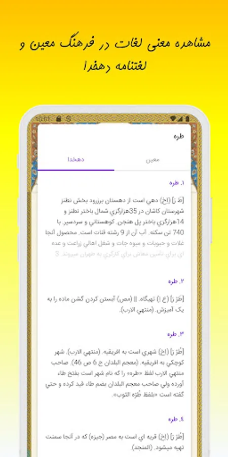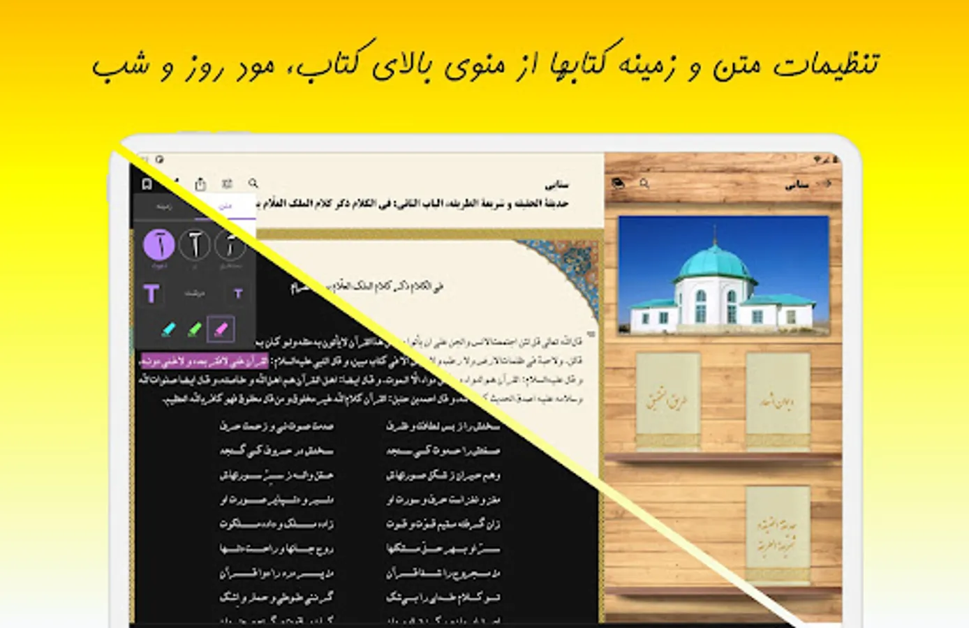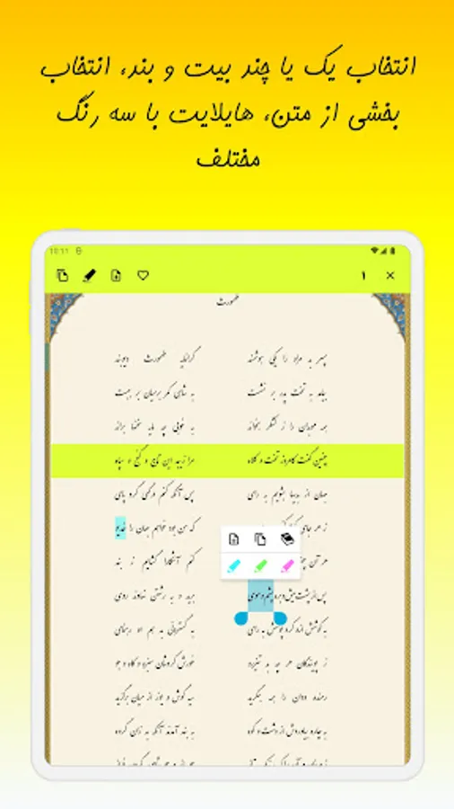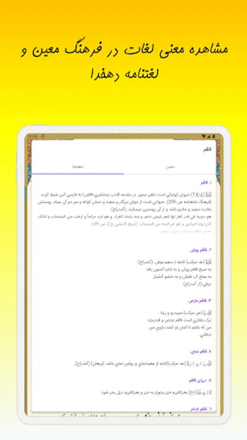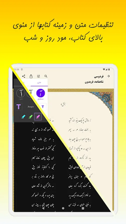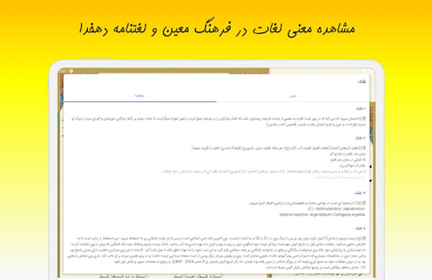 • Checking words meaning in dictionary: user can select a word from the text and check its meaning in Moeen or Dehkhoda online dictionaries.