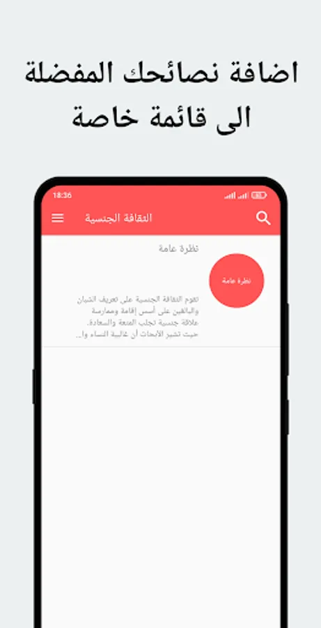 We offer you this free application that keeps you from wasting your precious time in searching various forums and sites, most of which are without result, so we specially made an application for you that helps you learn about sexual culture and the secrets of married life as you find the topics arranged and coordinated to make browsing the application easier and more comfortable for the eye.