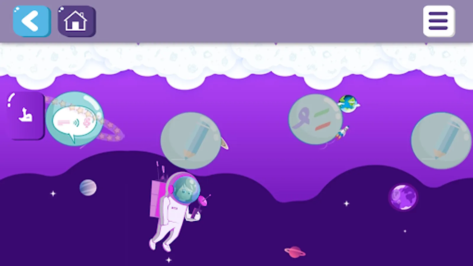 To get the child to speak from the early stages, games are introduced to help form words by associating pictures; these pictures will then combine themselves to form sentences. The child will also be able to record new words and sentences after playing these games. Full record of the child's performance as well as voice recordings will be saved for parents/teachers to check later on.