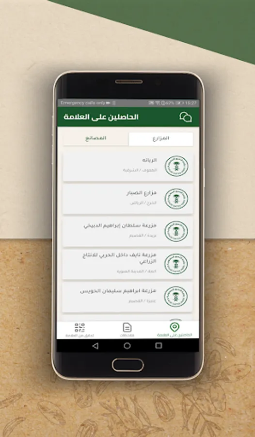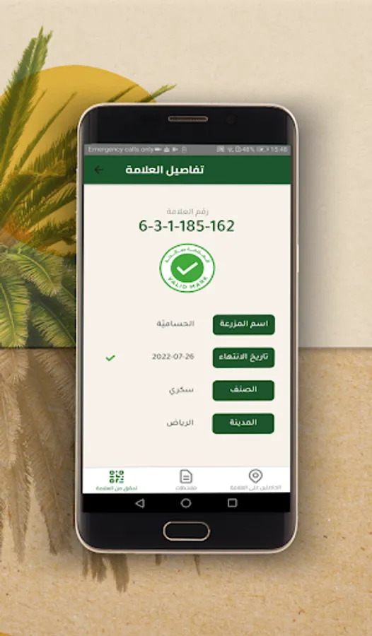 Saudi Dates mark app will let the user to validate the Saudi Dates mark by using QR code scanning also you can view a list of farms and factories certified by Saudi dates mark, in addition the user can submit suggestion and notes regarding the marks