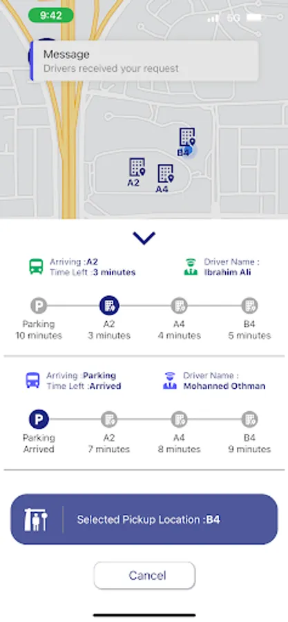 This app allow Takamol employee to track the transportation bus and notify the bus driver that they are waiting for him in the Parking or in office building.