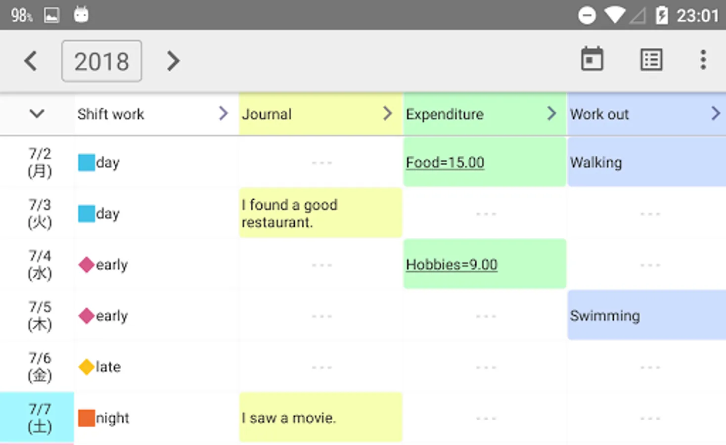 Schedule management, Journal, Expenditure records, Weight management, etc.
