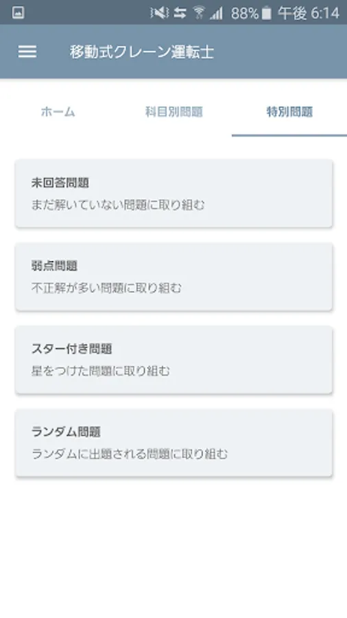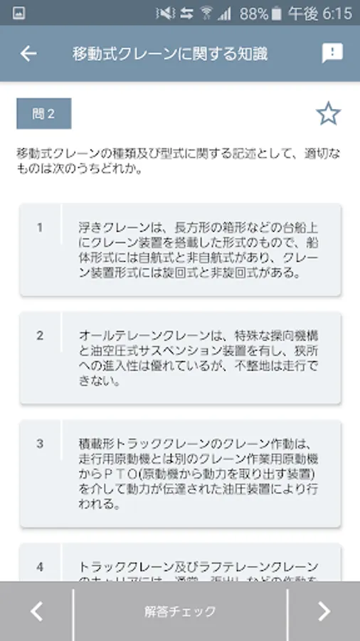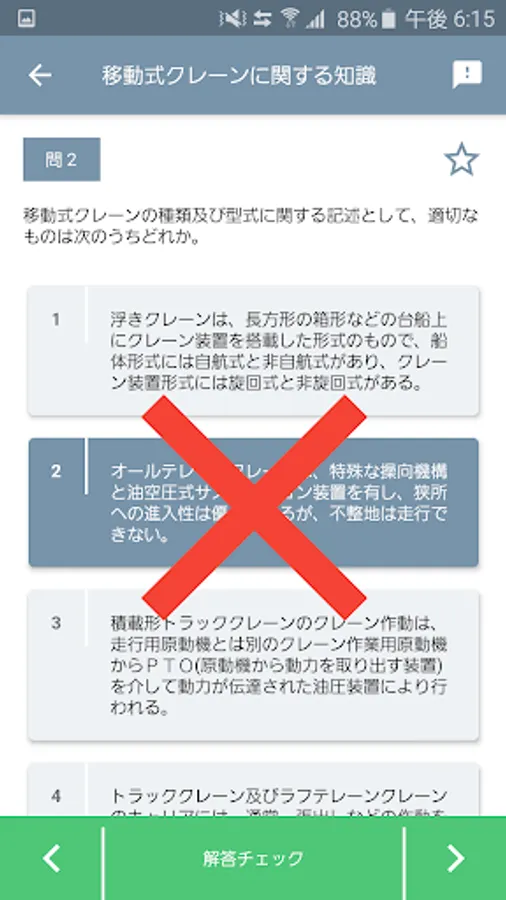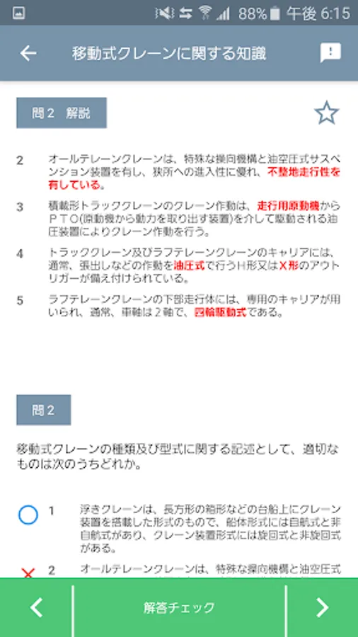 Mobile crane driver It is an application that allows you to learn past issues published in October 2019 of the qualification test in quiz game format.