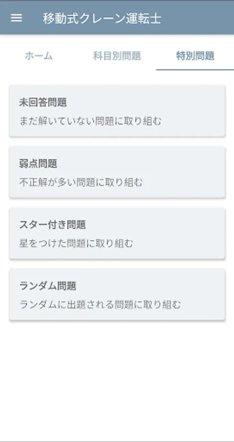This is an app that allows you to learn the past questions of the mobile crane operator qualification exam published in April 2023 in a quiz game format.