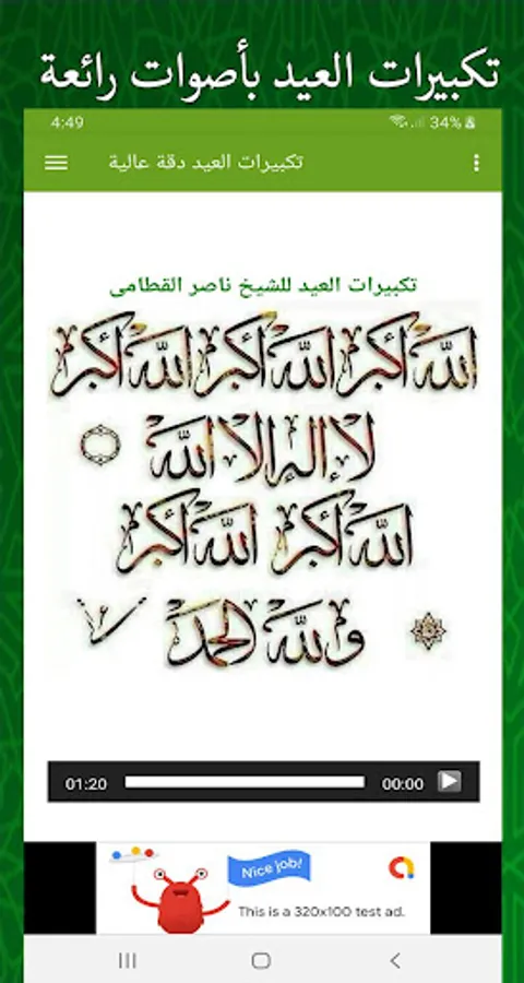 It contains the takbeers of Eid al-Fitr and Eid al-Adha written in a beautiful high-resolution voice, you will find the takbeers of the feast with a voice