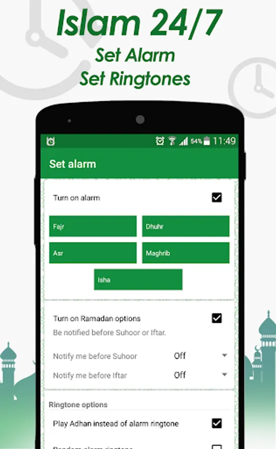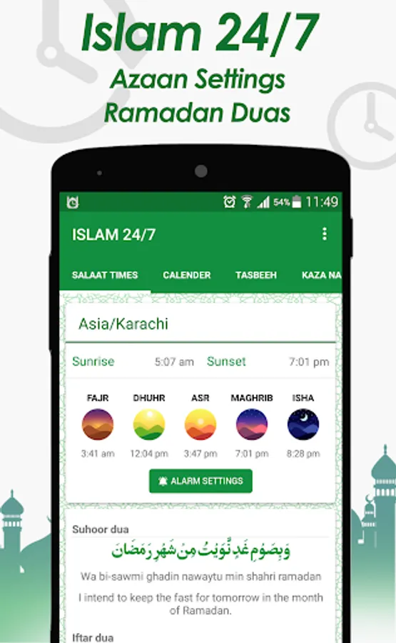 Worldwide Sahar and Iftar Time clock alarm for daily Ramadan with Ramadan Calendar, Tasheeb Counter, 99 Names of ALLAH, and more. App is designed for both phones & tablets.