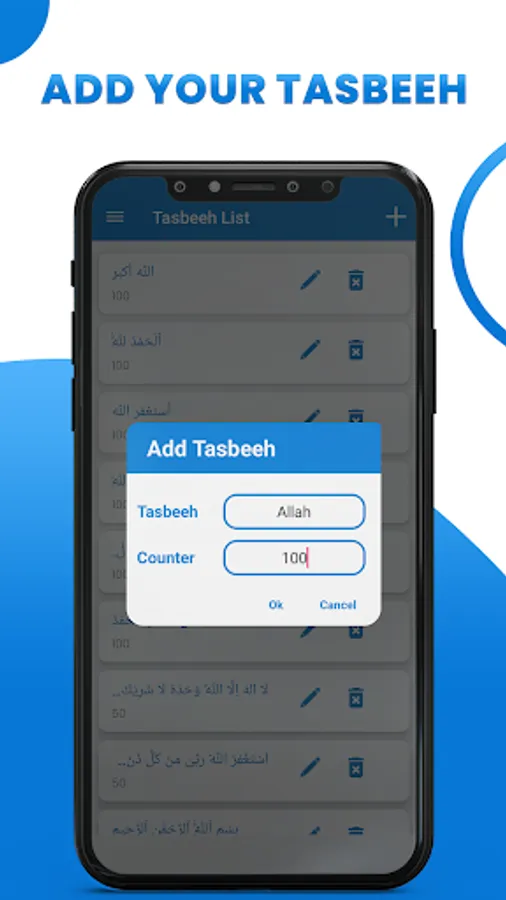 In our digital tasbeeh counter app, you can make your tasbeeh in two simple steps: Enter the tasbeeh/dhikr name and the number of counts.If you unintentionally close the app or leave the tasbeeh in the centre, our tasbeeh counter app allows you to resume where you left off because it keeps your history. As a result, you don't need to remember how many times you read dhikr/tasbih.