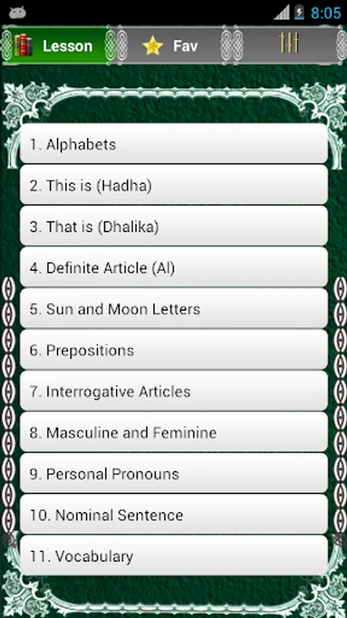 • Learn Arabic Pro teaches you the basics of the Arabic language at your own pace using easy-to-navigate lessons.