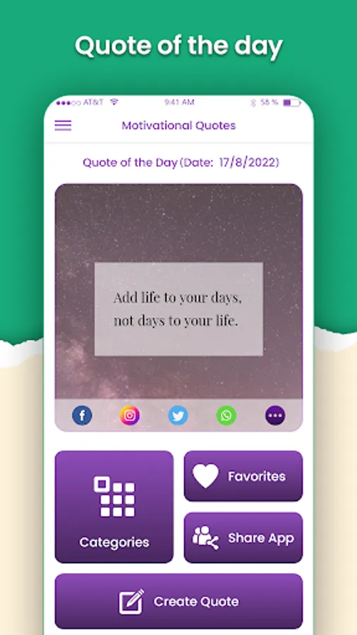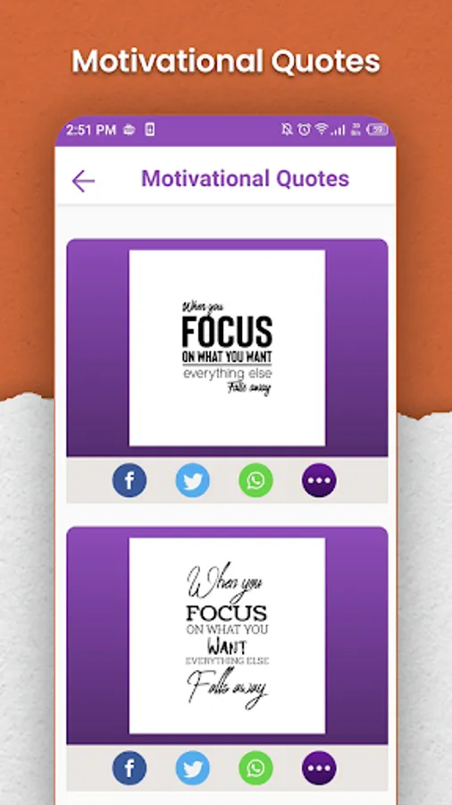 Quote App include multiple notable quotations which are included in the Daily Quotes App, sayings, and status updates from various categories are available for reading, sharing, and saving. Reading Motivational Quotations on a daily basis can help a person become more successful and live a better and also motivational sayings and apps from well-known people will motivate you and add a lot of optimism to your life. You can set a good status for more likes and following from your wall posts. If you're seeking for a lovely, motivating, and wonderful collection of quotations, sayings, and statuses! There are multiple of wise quotes available in Daily Quotes App.