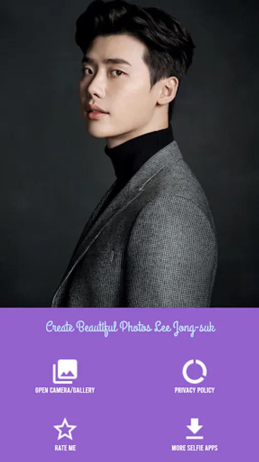 Create Beautiful Photos Lee Jong-suk is a photo editor for Lee Jong-suk fans and fans, this application will turn your selfies into really funny and new ones. Now you can take real pictures with your idol!