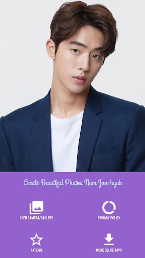 Create Beautiful Photos Nam Joo-hyuk is a photo editor for Nam Joo-hyuk fans and fans, this application will turn your selfies into really funny and new ones. Now you can take real pictures with your idol!