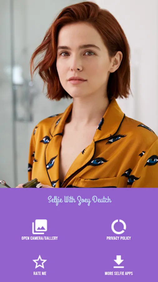 Selfie With Zoey Deutch is a photo editor for Zoey Deutch fans and fans, this application will turn your selfies into really funny and new ones. Now you can take real pictures with your idol!