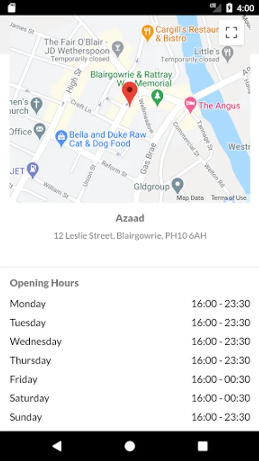 Other helpful information includes a map of our takeaway location, opening hours and contact details.