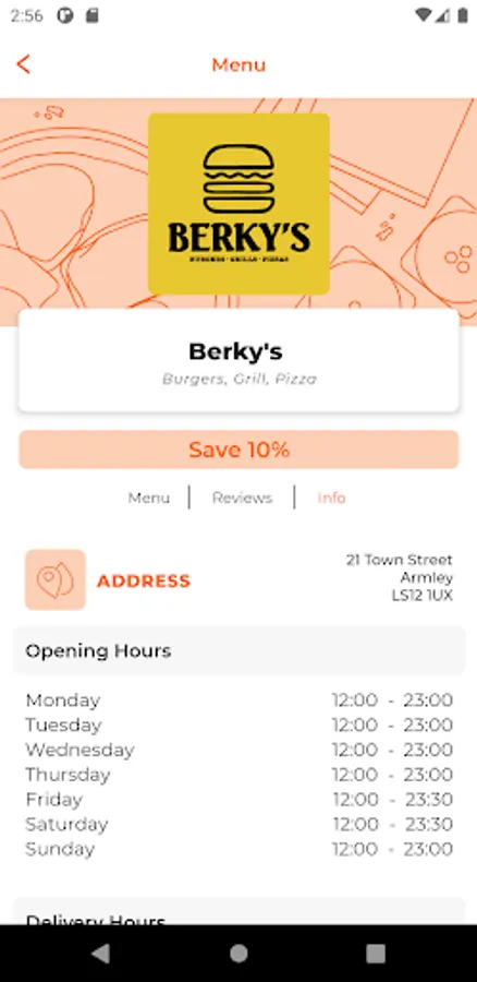 Other helpful information includes a map of our takeaway location, opening hours and contact details.