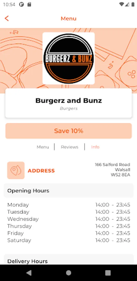 Other helpful information includes a map of our takeaway location, opening hours and contact details.
