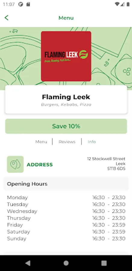Other helpful information includes a map of our takeaway location, opening hours and contact details.