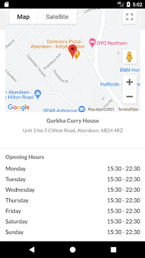 Other helpful information includes a map of our takeaway location, opening hours and contact details.