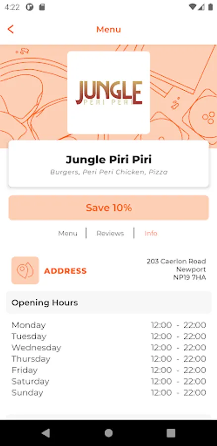 Other helpful information includes a map of our takeaway location, opening hours and contact details.