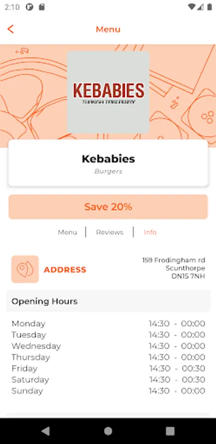 Other helpful information includes a map of our takeaway location, opening hours and contact details.