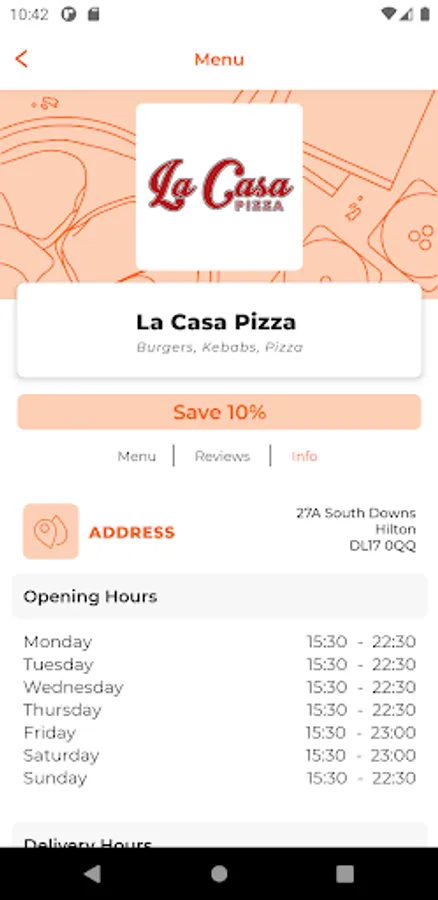 Other helpful information includes a map of our takeaway location, opening hours and contact details.