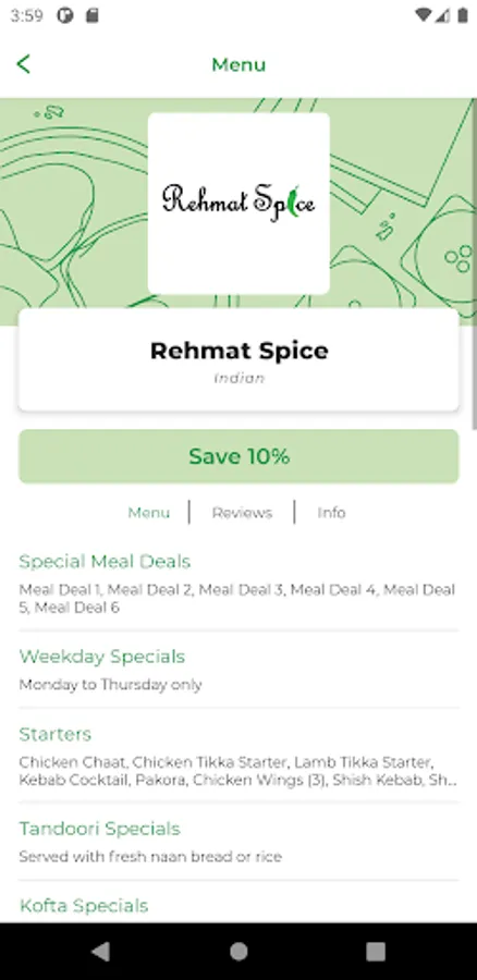 Other helpful information includes a map of our takeaway location, opening hours and contact details.
