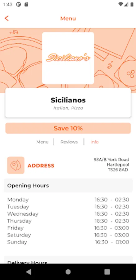 Other helpful information includes a map of our takeaway location, opening hours and contact details.