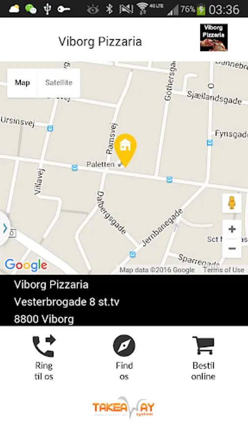In our app you can easily see our address on the map and telephone number and a few clicks you can order online.