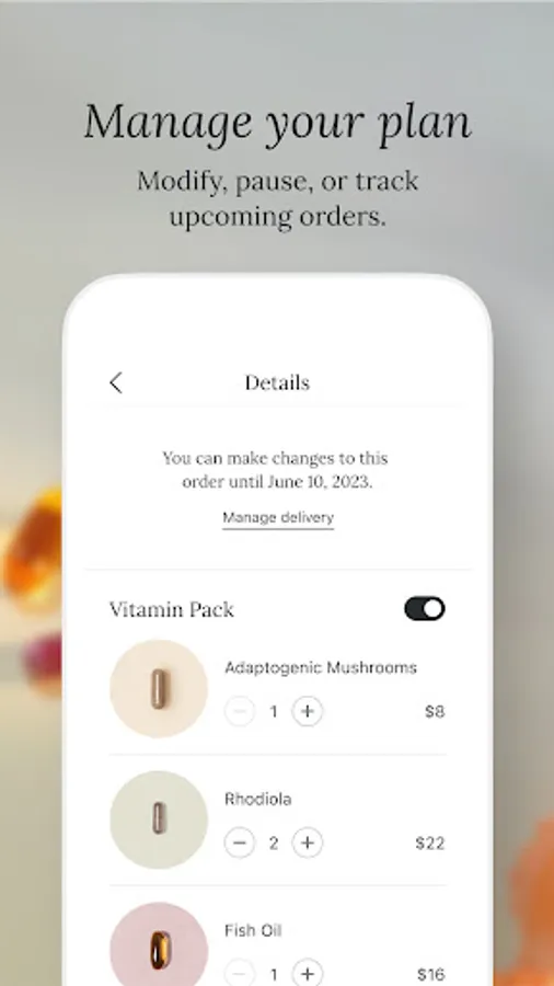 * Manage your subscription easily. You can change your pack, update deliveries, and more.