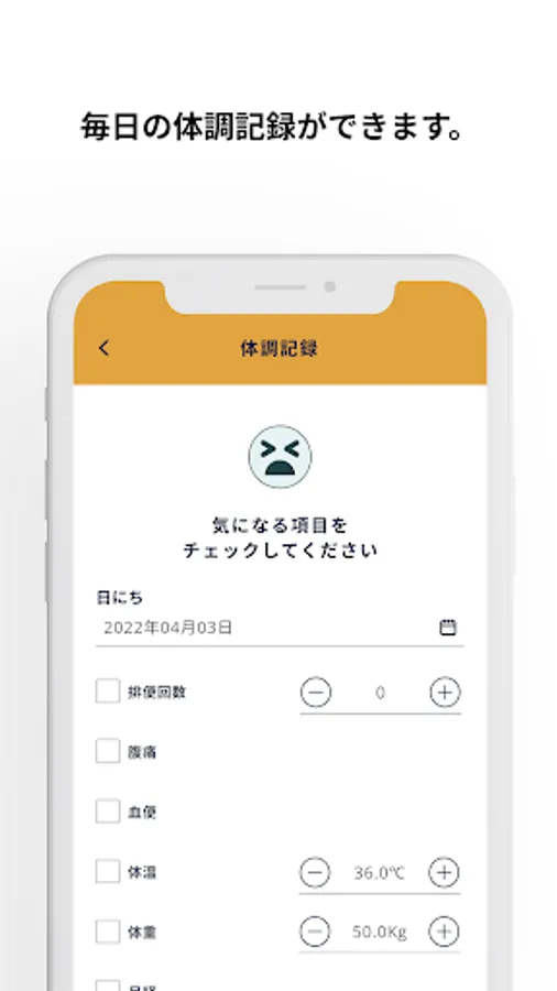 ・Symptom record (number of bowel movements, abdominal pain, bloody stool, body temperature, weight, menstruation, discomfort in the buttocks)