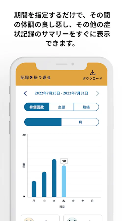 Simply specify a time period and instantly see a summary of how well you're feeling and other symptom records during that period.