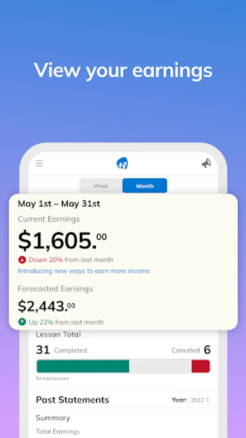 • See a breakdown of completed vs canceled lessons