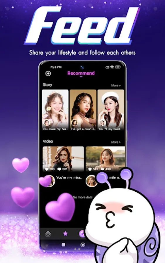 UTakeMe, chic purple snail app, full of entertainment and great community here. Possible to streaming, video call and chat with cuties for 24 hours.