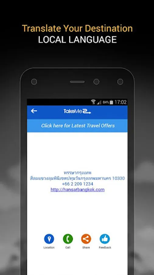 TakeMe2 is your must‐have travel companion. Covering hundreds of the world’s most popular cities, TakeMe2 will get you to your destination with ease. Simple and fast to use, TakeMe2 provides you with all the details for local hotels, restaurants, night‐spots and more - to make your journey all the more enjoyable. A popular feature of TakeMe2 is the ability to translate your desired destination into the local language to assist with hassle‐free travel ‐ great for eliminating difficult communication barriers with hotel concierge, taxi‐drivers and public transport conductors. Simply select where you want to go, and show TakeMe2 to your driver!