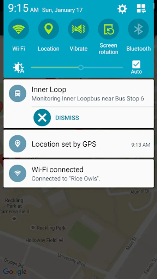 Bus Notifications: Notifies user when a selected bus is a quarter mile away along the bus route from a particular bus stop.