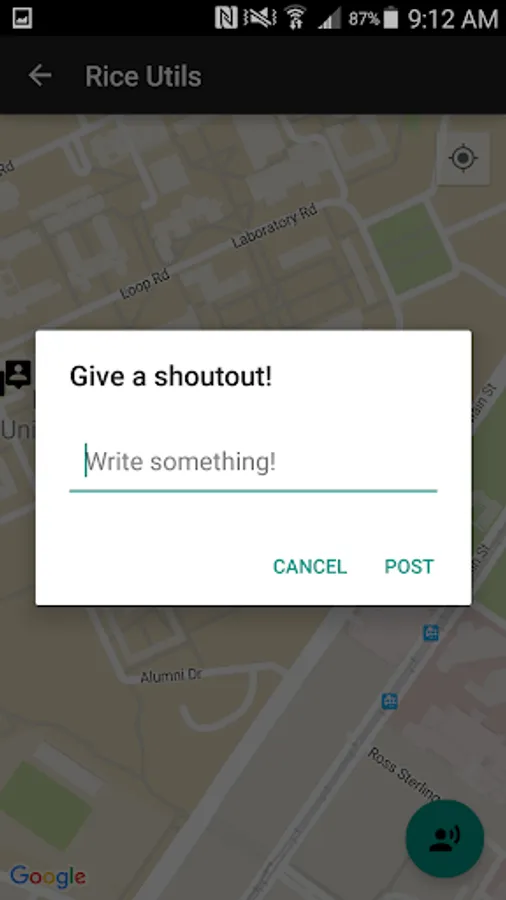 Shoutout: Allows users to post short messages that are shown on the map at their locations and to see messages that other people have posted.